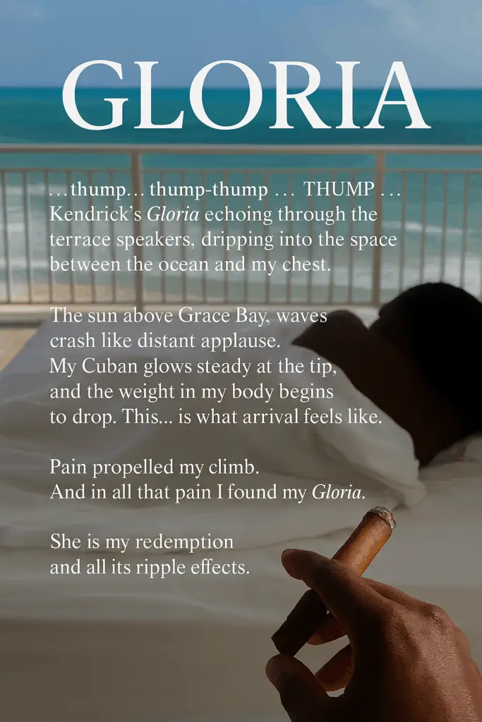 My Cuban glows steadily at the tip, and the weight in my body begins to drop.